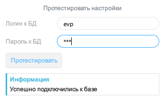 Тестирование подключения к базе данных сервера лицензирования необходимо, чтобы убедиться в правильности настроек новой учетной записи до её фактического использования. Для тестирования подключения к БД, введите логин и пароль, нажмите кнопку «Протестировать». Результат подключения отобразится во всплывающем сообщении «Информация».