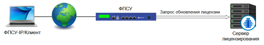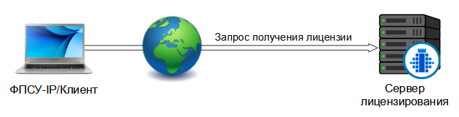 Получение лицензии Свободная лицензия может быть выдана ФПСУ-IP/Клиенту Сервером лицензирования. Общая схема взаимодействия рабочей станции ФПСУ-IP/Клиента и Сервера лицензирования приведена на рисунке ниже.