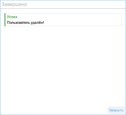 В открывшемся окне нажмите кнопку «Удалить». Подтвердите удаление учетной записи. Далее в окне отобразится результат операции, закройте окно.