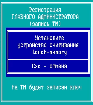 После выбора режима функционирования ФПСУ в подсистеме «горячего» резервирования будет запрашиваться ТМ Главного администратора для регистрации (при записи ТМ на него записывается ключ запуска).