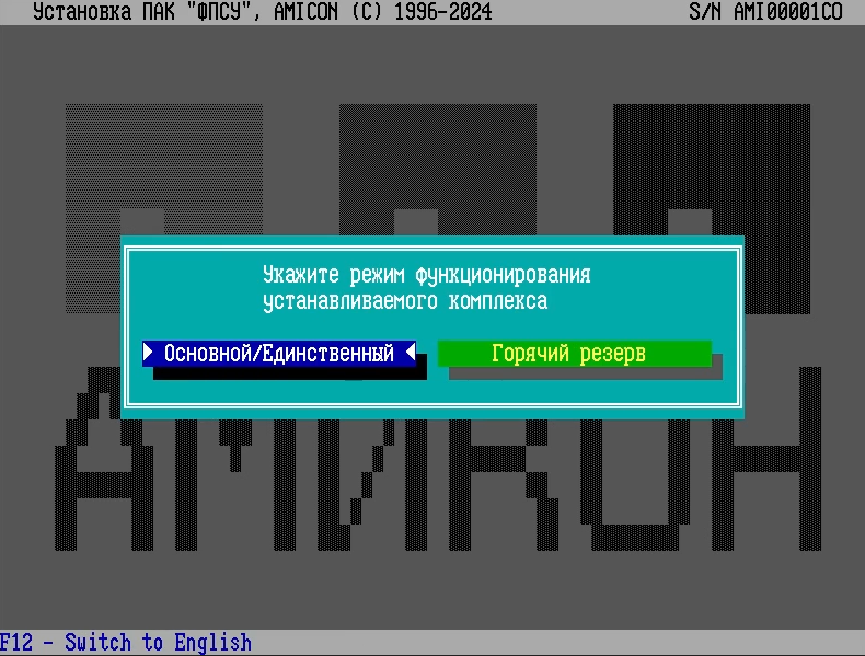 Если инсталляционный комплект выдан для ФПСУ с установленной подсистемой «горячего» резервирования, то после проверки полномочий Главного администратора программа установки предложит указать режим функционирования данного ФПСУ в комплексе «горячего» резерва. Выберите требуемый режим — «Основной/Единственный» или «Горячий резерв» и нажмите клавишу <Enter>. Если устанавливаются или переустанавливаются оба комплекса «горячего» резерва, установку рекомендуется начинать с "Основного".