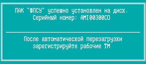 Установка программного обеспечения комплекса завершена. ФПСУ будет перезагружен, и после перезагрузки начнет работать в технологическом режиме.