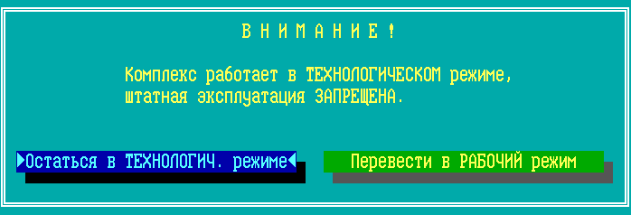 Отключите USB-носитель с инсталляционным комплектом ФПСУ. После перезагрузки ФПСУ на экран выдается служебное оповещение о том, что ФПСУ работает в технологическом режиме: