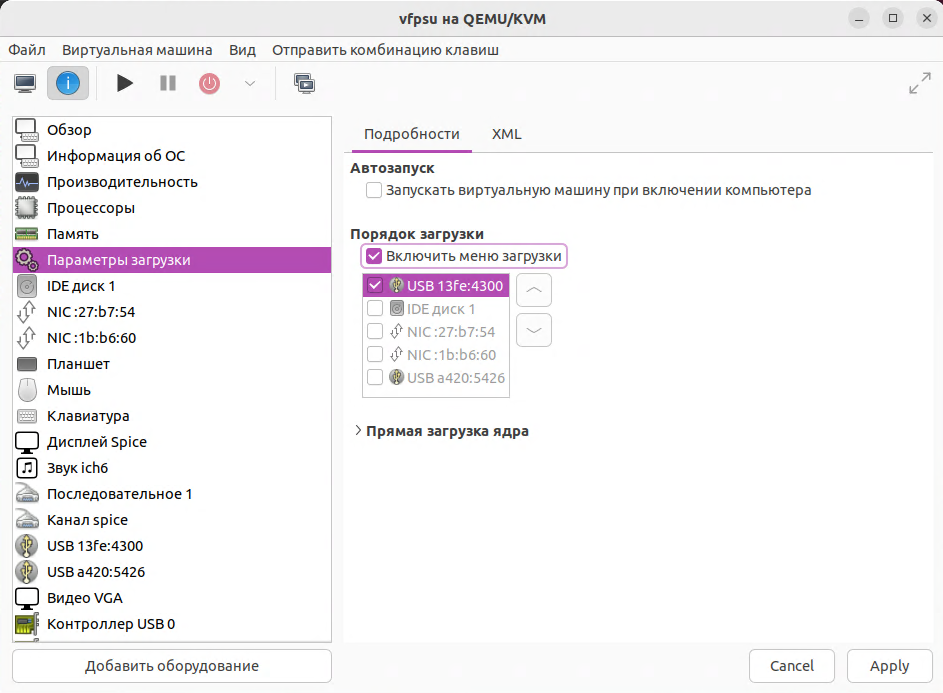Установка ФПСУ с готового образа диска на USB-носителе в QEMU/KVM |