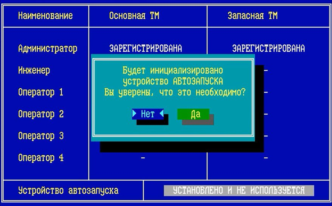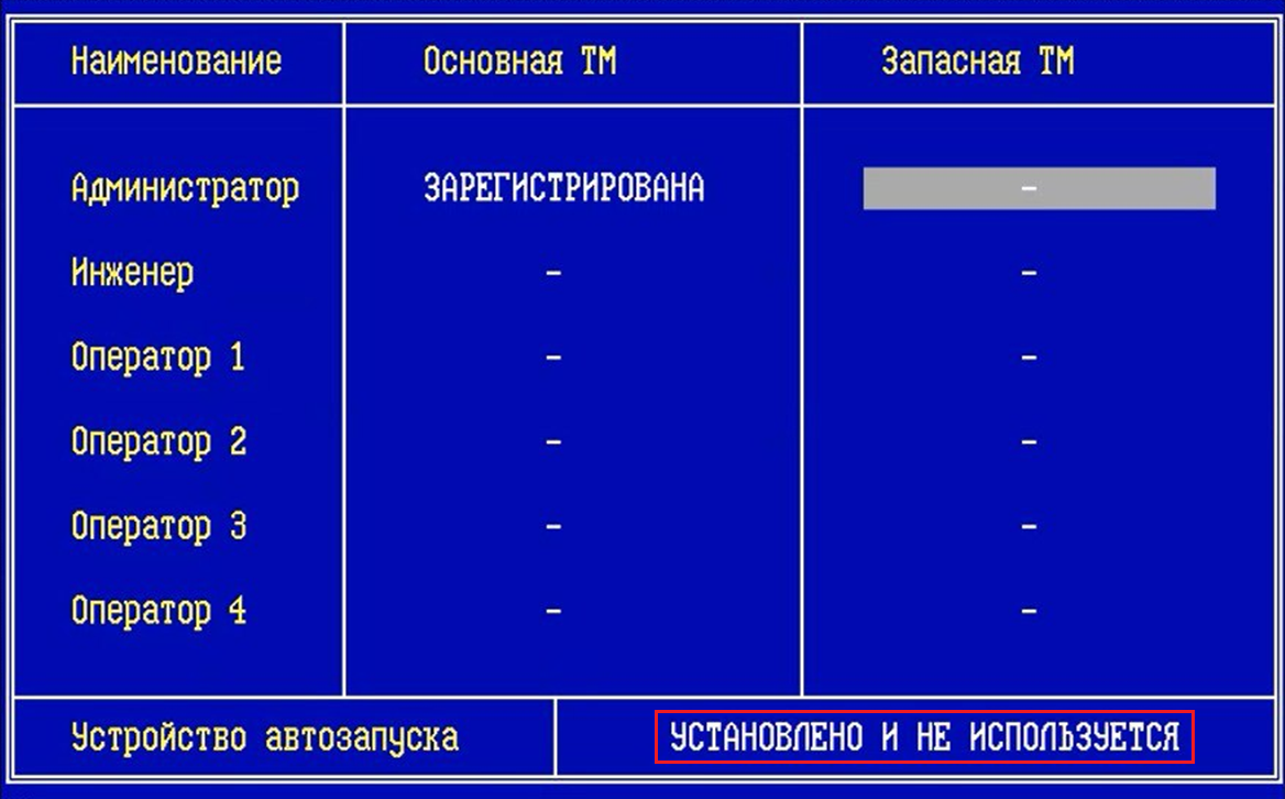 Если устройство автозапуска HW отключали и подключили обратно, или в случаях перебоев электропитания, для запуска ФПСУ и восстановления возможности последующих перезапусков ФПСУ с помощью устройства автозапуска HW потребуется разовое предъявление ТМ-идентификатора администратора и повторная инициализация устройства автозапуска HW. На экран при запуске ФПСУ в таком случае будет выдано сообщение «Touch a TM to the touch-memory reader»: