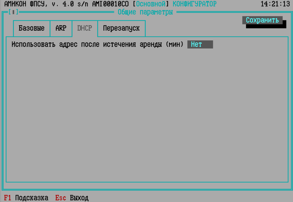 Настройки на вкладке «DHCP» окна «Общие параметры»: