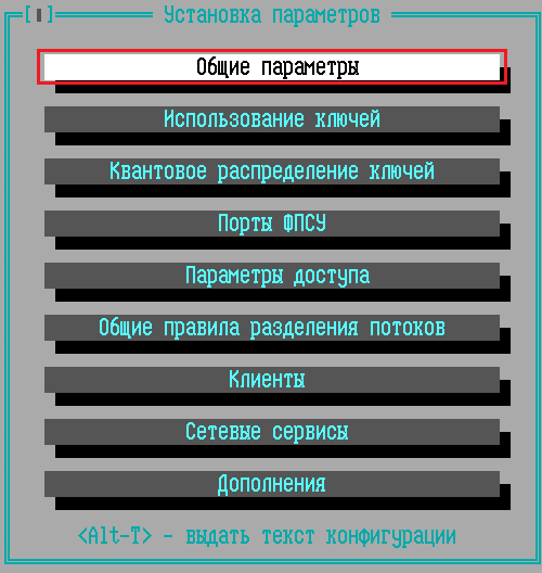 Общие параметры конфигурации ФПСУ |