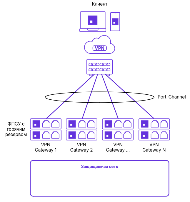 Механизм горизонтального масштабирования (балансировка) позволяет распределить нагрузку подключений клиентов на несколько ФПСУ.