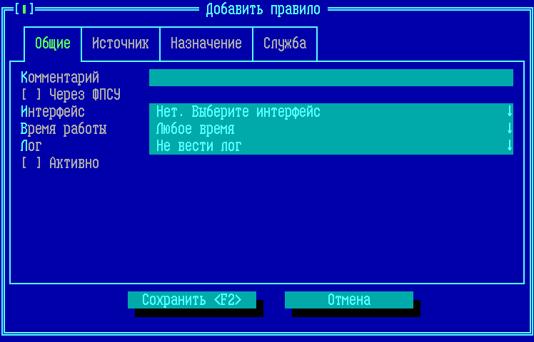 Комментарий – обязательное текстовое поле для пояснения правила. Через ФПСУ – при установлении флага пакеты, подпадающие под данное правило трафика, будут отправляться в туннель между ФПСУ. Название поля ниже поменяется на «ФПСУ», в этом поле следует выбрать ФПСУ из списка, описанных на портах ФПСУ.