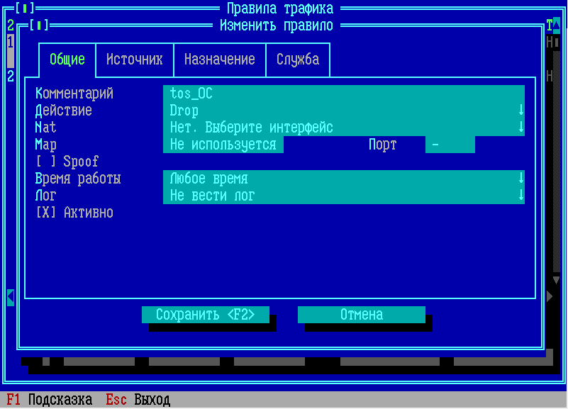 Выбрать заранее созданный шаблон фильтра фрагментированных IP-пакетов. («Службы в правилах фильтрации трафика по содержимому»). При необходимости изменить правило трафика: