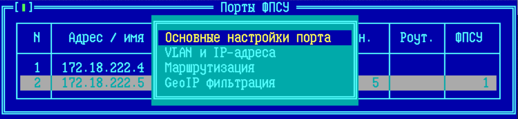 Для того, чтобы ФПСУ ретранслировал DHCP-запросы, требуется для каждого порта (и каждого VLAN) ФПСУ назначить основной и (опционально) запасной DHCP-сервер из ранее заданного списка IP-адресов (см. пункт «DHCP-сервер и DNS-Relay»). Таким образом, администратор определяет, куда ретранслировать пришедший DHCP-запрос, в зависимости от того, на какой порт (и в какой VLAN) он пришёл. ВНИМАНИЕ! Назначить порту DHCP-сервер получится только в том случае, если IP-адреса портов 1 и 2 порта ФПСУ не совпадают (то есть, если IP-адрес 2 порта установлен в «192.168.000.036», то IP-адрес 1 порта должен быть установлен в другое значение, например «192.168.000.035»). Вход в интерфейс назначения DHCP-серверов порту ФПСУ происходит из окна описания основных настроек порта.