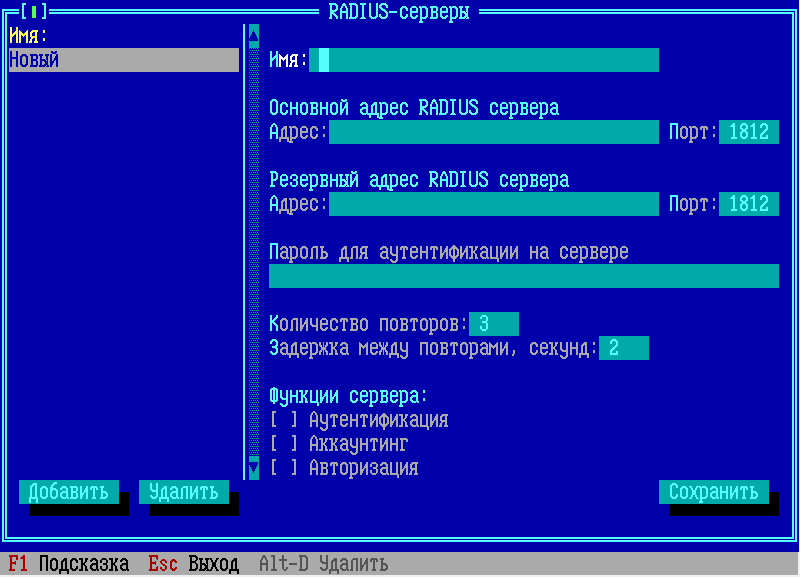 Для указания RADIUS-сервера необходимо в открывшемся окне нажать кнопку «Добавить».