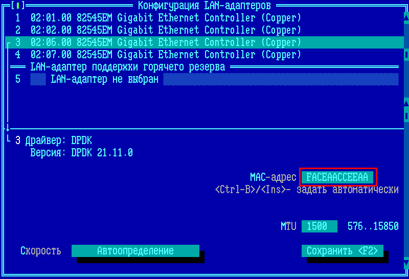 Например, если к порту ФПСУ подключен СВКРК-Б со стандартными сетевыми параметрами, то MAC-адрес порта ФПСУ должен быть установлен равным MAC-адресу соседнего СВКРК А:«FA:CE:AA:CC:EE:AA»: