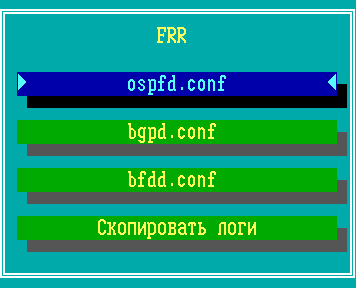 Меню конфигурационных файлов дополнения frr, содержит следующие команды: