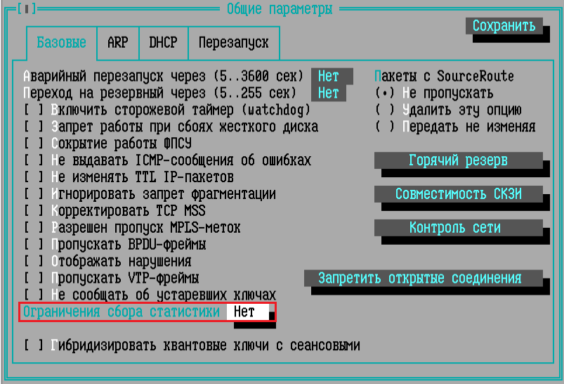 Выделите строку «Ограничения сбора статистики» курсором и нажмите клавишу <Enter> или <Пробел>.
