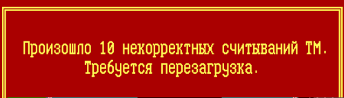 Если пользователь в течение 10 попыток не предъявил корректный ТМ-идентификатор потребуется перезагрузка ФПСУ, на экран будет выдано сообщение: