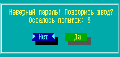 При вводе неправильного пароля на экран выводится сообщение с количеством оставшихся попыток ввода пароля: