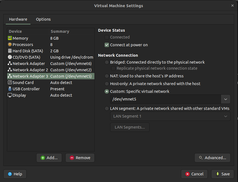 Для изменения конфигурации виртуальной машины с резервным ФПСУ требуется остановить виртуальную машину, открыть окно настроек виртуальной машины.
