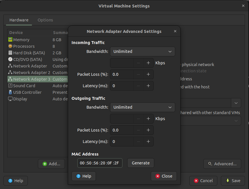 Для обхода ограничения VMware, которое не позволяет изменить MAC-адрес сетевого адаптера, необходимо вручную прописать требуемый MAC-адрес в настройках виртуальной машины (в интерфейсе VMware) для данного сетевого адаптера.