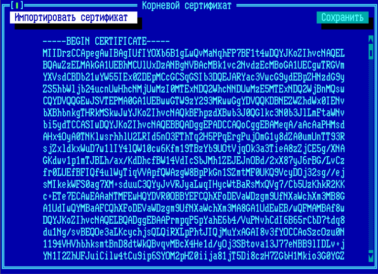 В строке указывается URL-путь к архиву правил, который будет являться источником обновления. В качестве сетевого протокола взаимодействия с источником обновлений рекомендуется указывать протокол HTTPS, чтобы загружать данные по защищенному соединению. Защищенное соединение гарантирует шифрование информации, передаваемой между источником обновления и ФПСУ. В этом случае требуется предварительно установить корневой сертификат для подтверждения, что источник обновлений верифицирован, т.е. проверен и является доверенным (см. кнопку «Импортировать сертификат»). Указав URL-путь, необходимо установить флаг «Включен» для данного источника обновления. Для сохранения настроек следует выполнить команду «Сохранить» или нажать клавишу <F2>. Выход без сохранения осуществляется по клавише <Esc> или командой «Отмена». Включенный источник обновления в списке на вкладке будет отмечен знаком «Х». Корневой сертификат – файл, в котором указаны данные удостоверяющего центра. Если корневой сертификат задан, при обновлении списка правил проверяется, что сертификат источника обновлений был выдан этим корневым сертификатом. По нажатию кнопки открывается корневой сертификат для просмотра. Корневой сертификат idsstore.amicon.ru установлен по умолчанию.