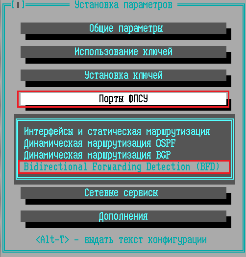 Настройки протокола открываются из пункта меню «Порты ФПСУ Bidirectional Forwarding Detection (BFD)».