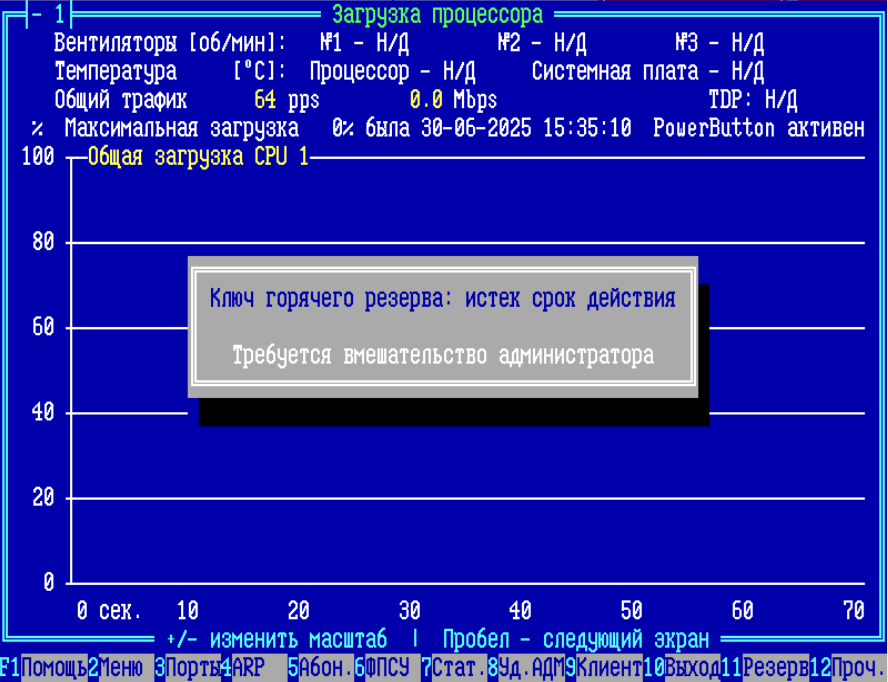 Ключ горячего резерва подлежит замене в ряде случаев: завершение установленного срока действия ключа, утеря или компрометация ТМ-идентификатора с ключом. В случае истечения срока действия ключа горячего резерва на экран ФПСУ выдается следующее предупреждение: