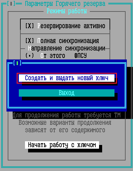 8. Зарегистрировать считанный c ТМ-идентификатора ключ горячего резерва на резервном ФПСУ.