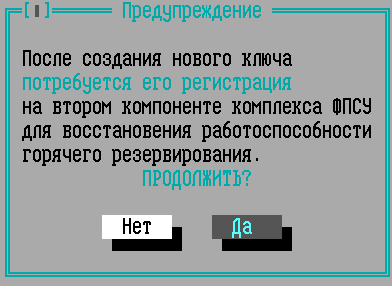 4. Прочитайте появившееся предупреждение и подтвердите выполнение команды создания нового ключа, нажмите кнопку «Да»;