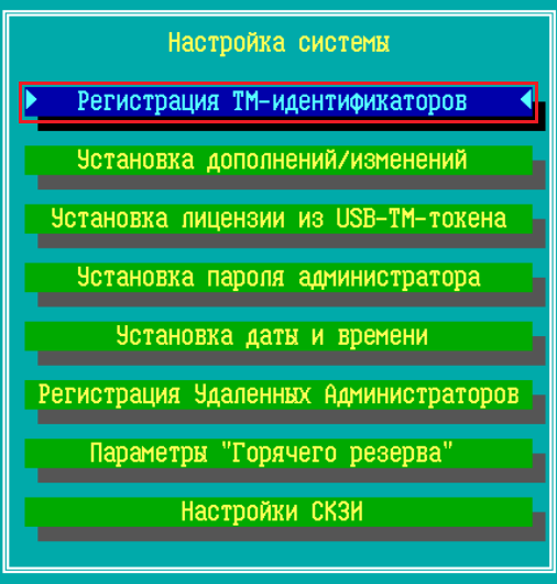 Команда «Регистрация ТМ-идентификаторов» активируется из меню «Настройки системы» ФПСУ.