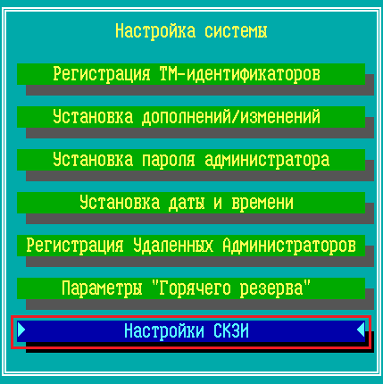 2. Выполните команду «Настройки СКЗИ» меню настройки системы: