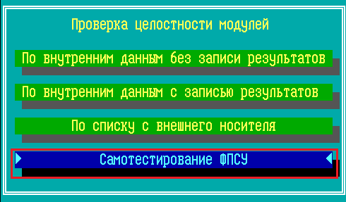 Из пункта меню «Проверка целостности» администратор может выполнить ручную проверку функционала межсетевого экрана ФПСУ, «Самотестирование ФПСУ»: