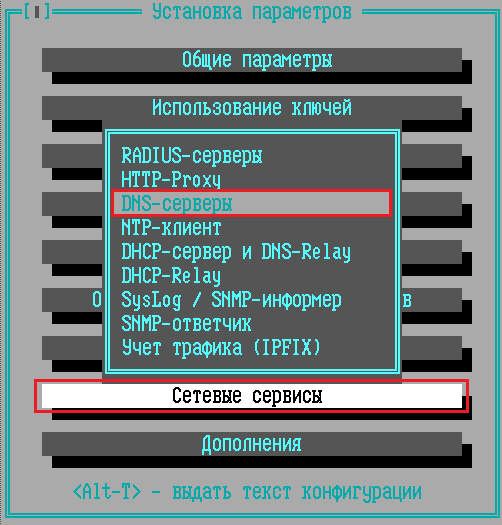 Для указания DNS-сервера выберите в меню «Сетевые сервисы» конфигурации ФПСУ команду «DNS-серверы»: