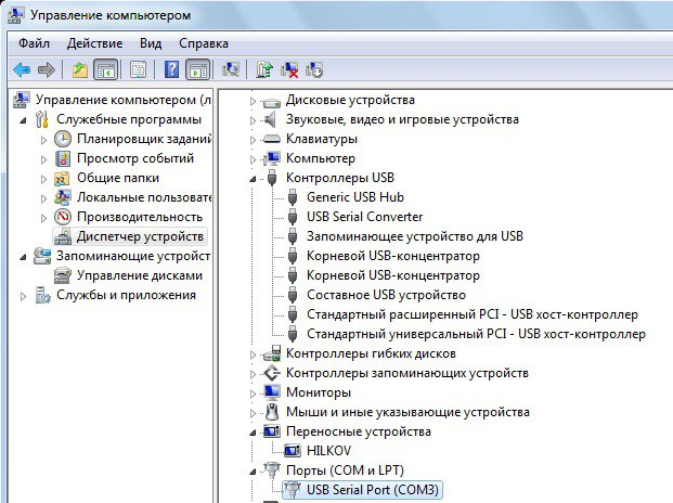 После успешной установки драйвера консольный кабель должен обнаруживаться системой как «USB Serial Port» в группе устройств «Порты (COM и LPT)».