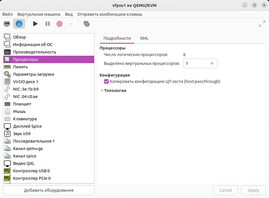 Настройка виртуальной машины QEMU/KVM |
