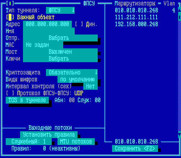 Тип туннеля – задается тип туннеля, который строит ФПСУ с другим объектом взаимодействия.