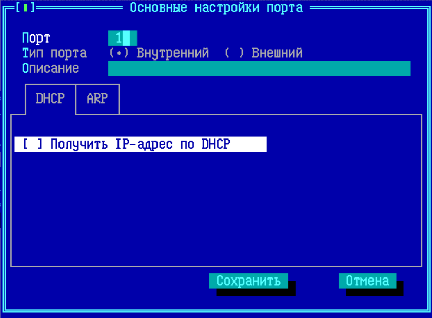 Для основной настройки порта необходимо определить будет ли являться данный порт внутренним, со стороны которого будет подключена защищаемая локальная сеть, или внешним, со стороны которого будет подключена открытая (не защищённая) сеть передачи данных, каким будет IP-адрес порта – задан статически или получен динамически по протоколу DHCP.