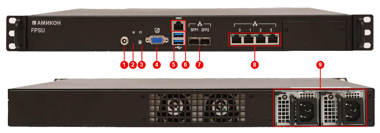 В данном разделе описано начало работы с ПАК ФПСУ-IP с резервированием в исполнении HSTB-EXT8.1, приведено описание поставляемого комплекса, внешнего вида и комплекта поставки. Данный раздел относится к продуктам с кодом FPSU-CS3-HSTB-EXT8.1, FPSU-CS4-HSTB-EXT8.1. ПАК ФПСУ-IP с резервированием является межсетевым экраном, применяется для защиты информации от несанкционированного доступа, обеспечивает фильтрацию сетевого трафика. ФПСУ‑IP физически подключается в разрыв цепи между защищаемой локальной вычислительной сетью и внешней сетью или между логическими сегментами локальной вычислительной сети, чтобы все входящие и исходящие потоки данных проходили через ФПСУ‑IP.