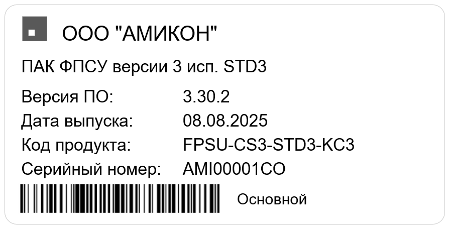 Размеры упаковки комплекта поставки, см На картонной упаковке комплекта поставки сверху в правом верхнем углу размещается этикетка с серийным номером ПАК ФПСУ-IP, вариантом аппаратной платформы, артикулом и датой выпуска.