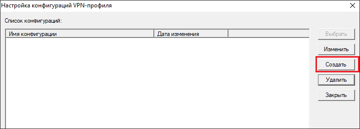 В открывшемся окне нажать кнопку «Создать» и ввести название конфигурации.