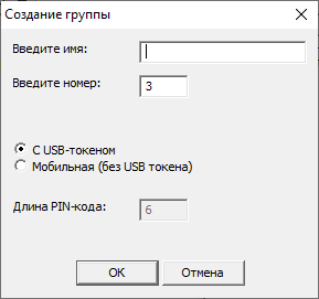 3. Установить переключатель в положение «с USB-токеном» для создания группы пользователей, работающих с ФПСУ-IP/Клиентом с применением устройства «VPN-Key», или «Мобильная (без USB-токена)» для создания группы пользователей, работающих без использования устройства «VPN-Key».