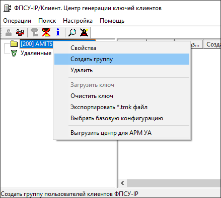 •Удалить - команда для удаления группы из Криптосети Клиентов. Доступно удаление только пустой группы.