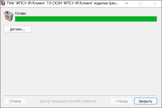 Будет выполнен переход в окно прогресса удаления программного обеспечения, по завершению которого состояние перейдет в статус «Готово». Для завершения удаления необходимо нажать кнопку «Закрыть»: