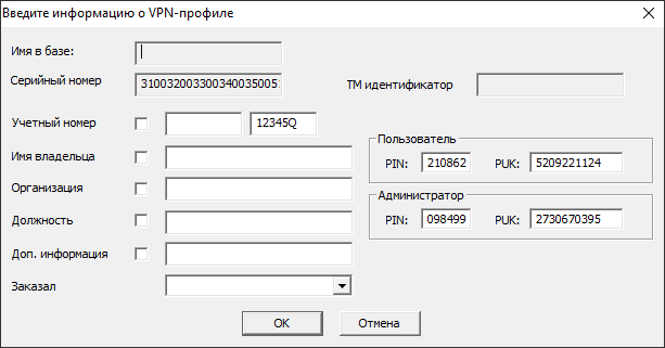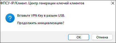 При повторной инициализации сведения об устройстве «VPN-Key» могут быть изменены. |