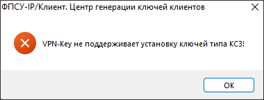 В случае, если VPN-Key не поддерживает установку ключей типа КС3, то на экран будет выведено сообщение следующего вида: