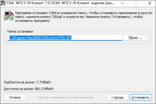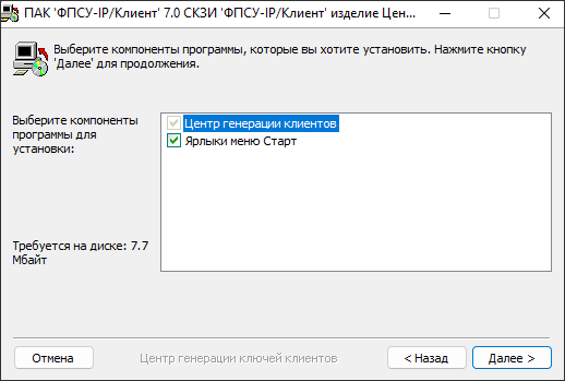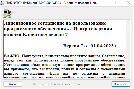 Перед установкой программы рекомендуется выполнить контроль целостности файла установки CGKK_7_0.exe. (см. пункт «Контроль целостности до установки»). Для установки ПО ЦГКК в операционную систему необходимо выполнить следующие действия: