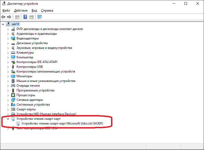 Для проверки корректности установки драйверов для работы с устройством «VPN-Key» необходимо вставить в USB-порт одно из устройств «VPN-Key», открыть «Диспетчер устройств» и найти объект «USB Smart Card reader» в списке установленных устройств.