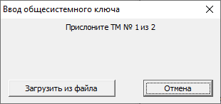 3. Прислонить по очереди (или подключить к USB-порту) все запрашиваемые ключевые носители. Если общесистемный ключ записывался в виде файла, необходимо нажать кнопку «Загрузить из файла» и последовательно загрузить все файлы, в которые были записаны части общесистемного ключа.