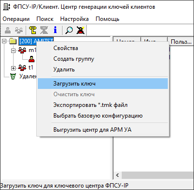 Для изготовления ключевых носителей ФПСУ-IP/Клиентов необходимо загрузить общесистемный ключ той Криптосети Клиентов, в которой требуется создать пользователя.