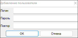 3. В открывшемся окне «Добавление пользователя» ввести логин администратора ЦГКК для входа в систему, а так же создать и продублировать его пароль. После нажатия клавиши «ОК» администратор ЦГКК отобразится в окне «Список авторизованных пользователей».