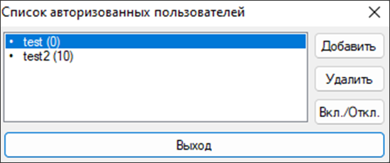 2. Для добавления администратора ЦГКК и заведения для него пароля нажать кнопку «Добавить» в окне «Список авторизованных пользователей».